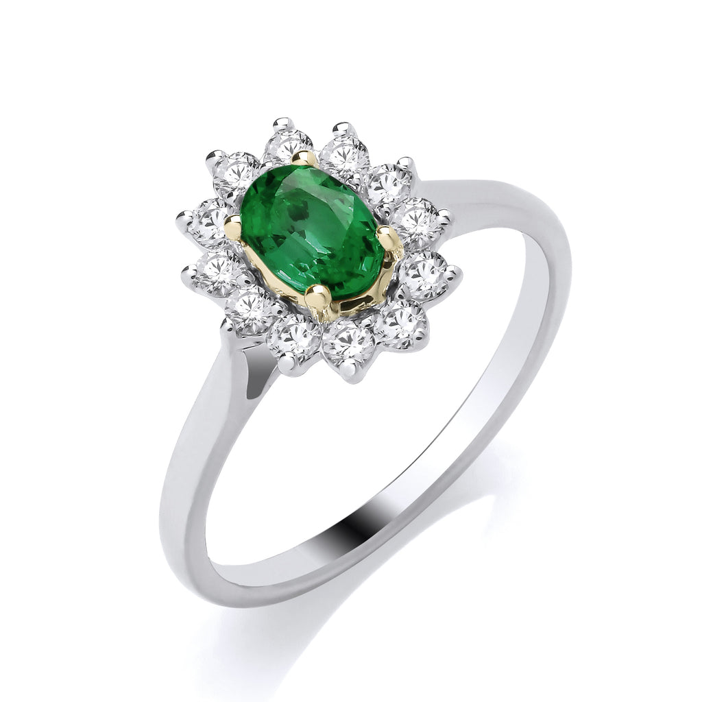 Emerald and Diamond Cluster Ring. 9ct White & Yellow Gold.