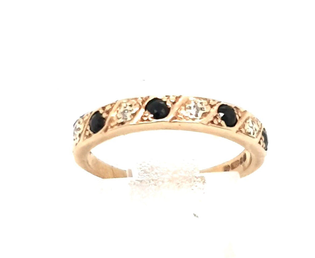 Sapphire & Diamond Half Eternity Dress Ring. 9ct Yellow Gold.