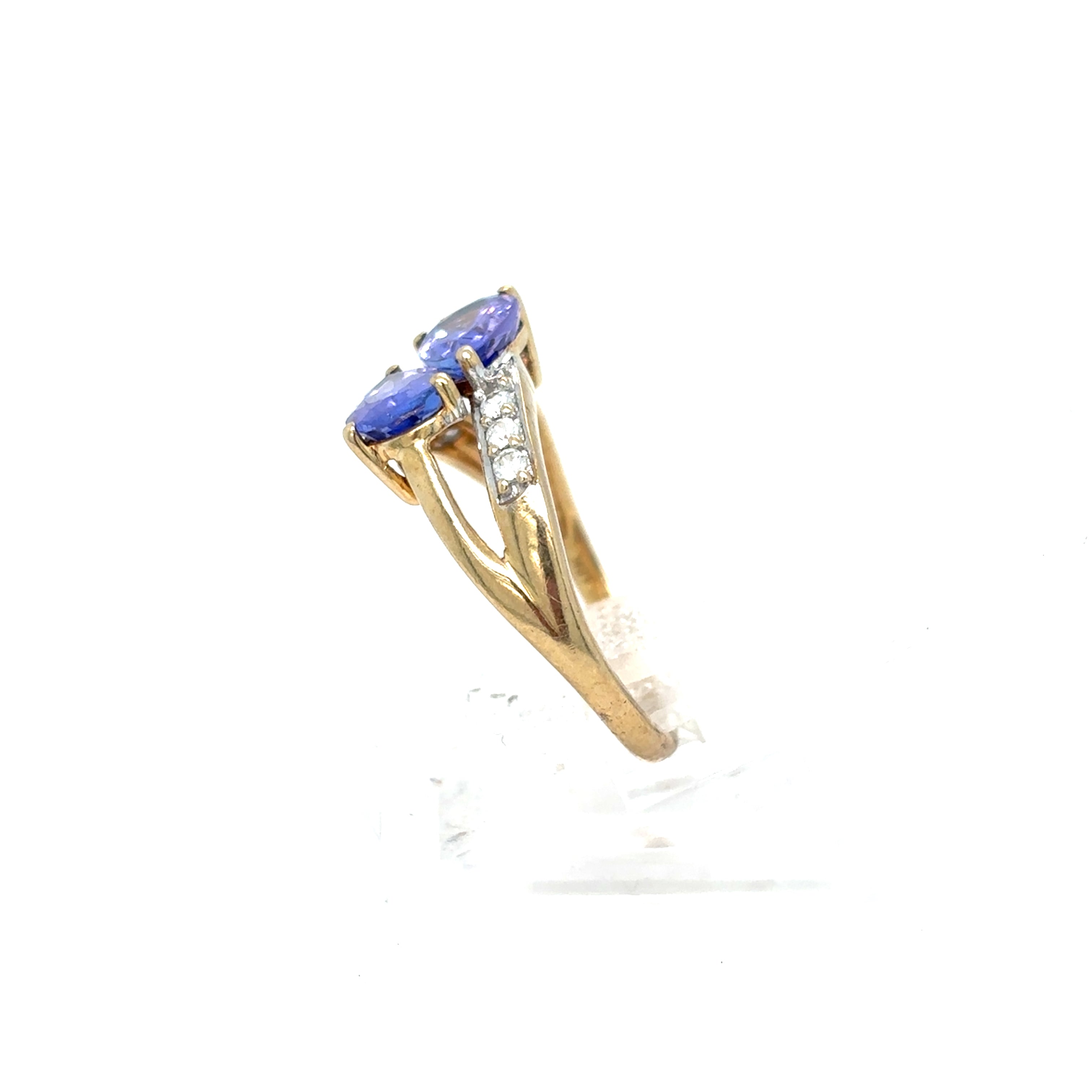 9ct Yellow Gold Tanzanite & Cubic Zirconia Dress Ring. Two Pear Cut Tanzanite. Pre-Loved Fine Jewellery