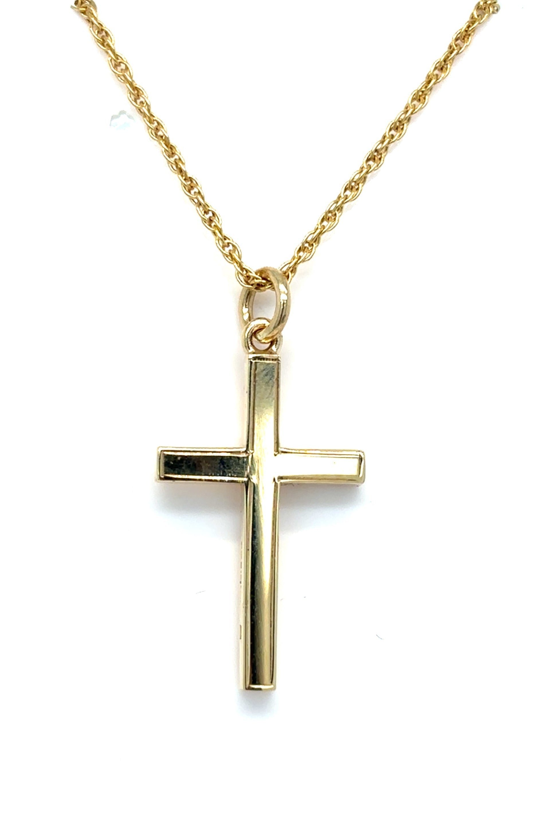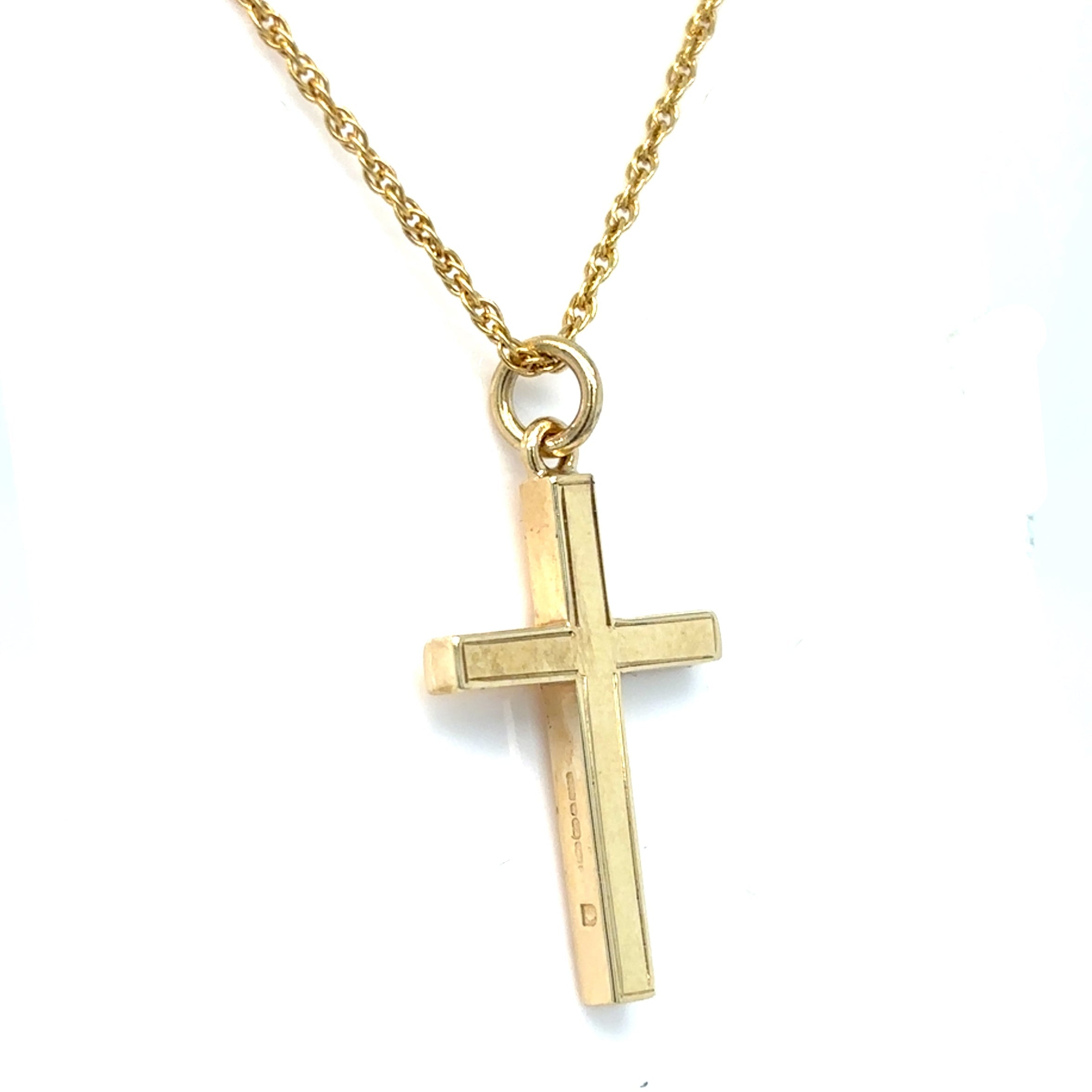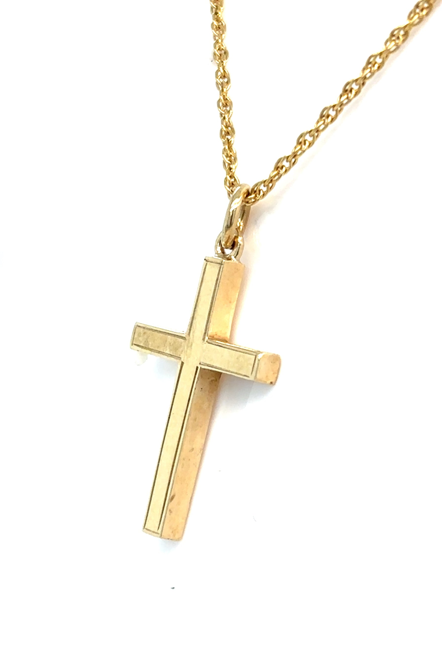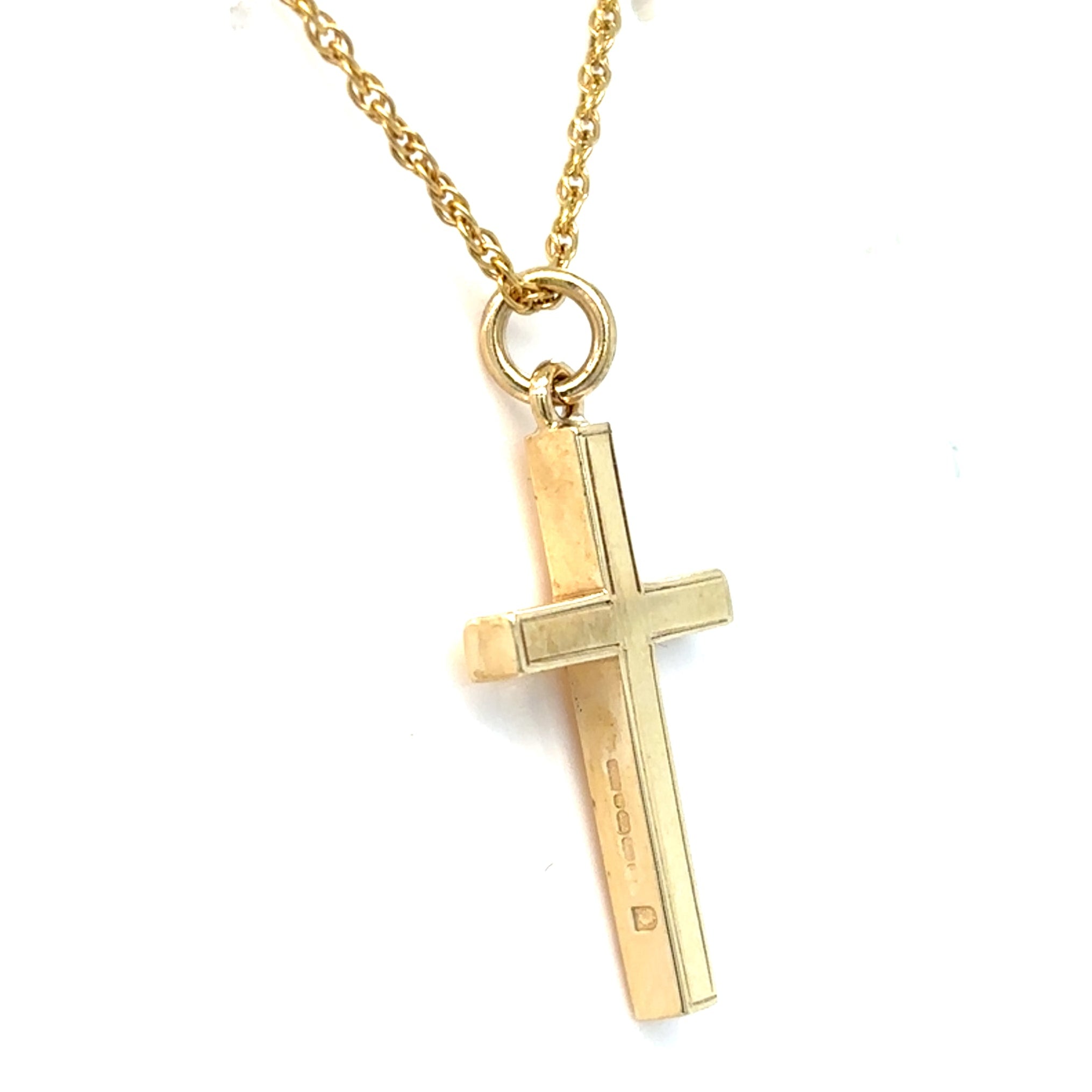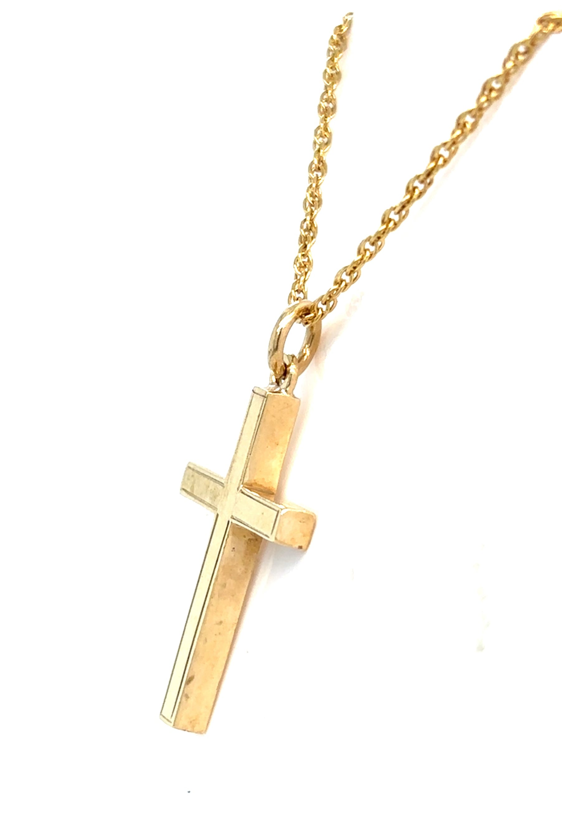 9ct Gold Solid Cross Pendant & 20" Prince of Wales Chain. Pre Loved Fine Jewellery.