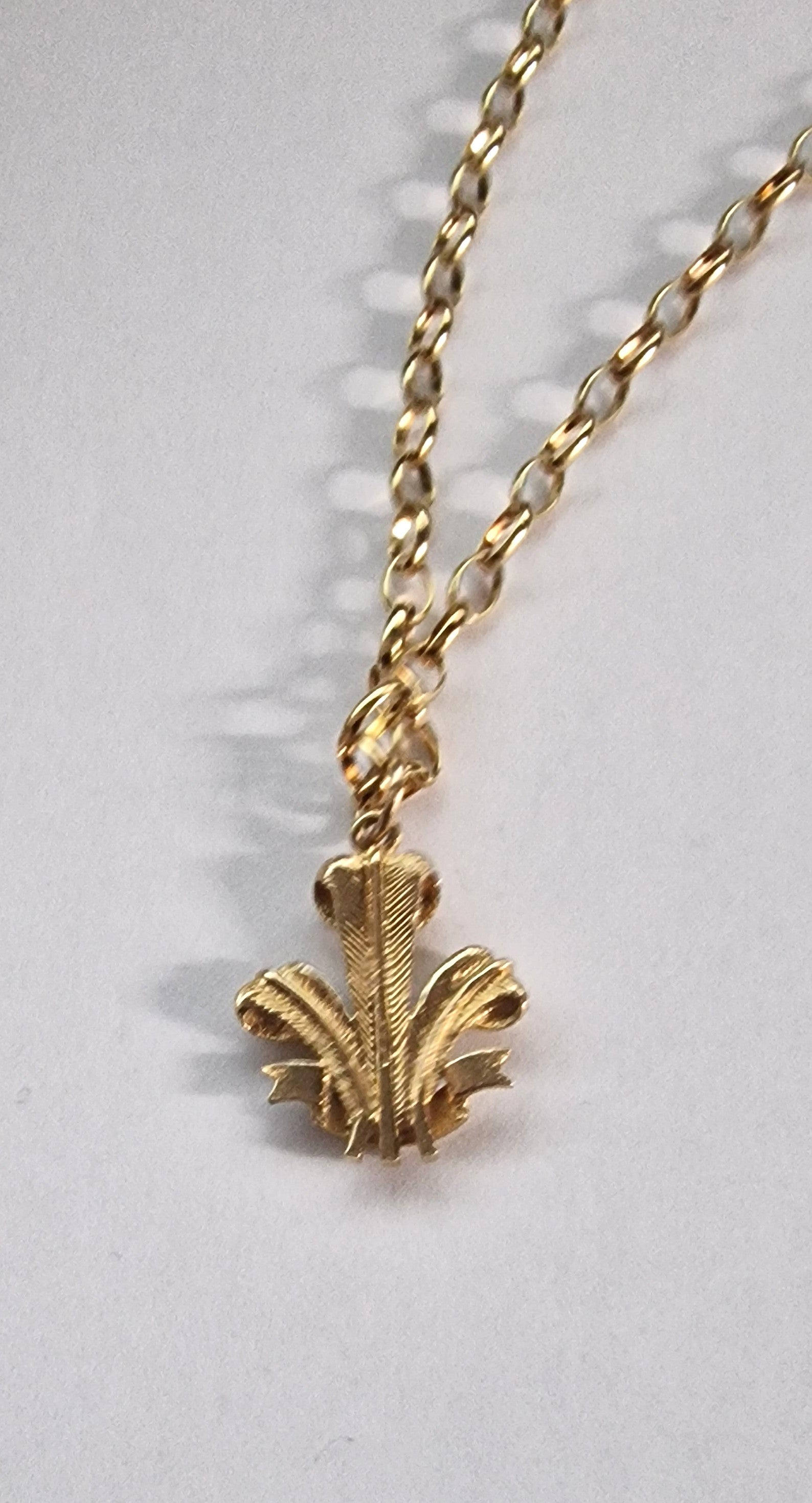 9ct Gold Three Feathers Pendant & Chain – Pre-Loved Fine Jewellery