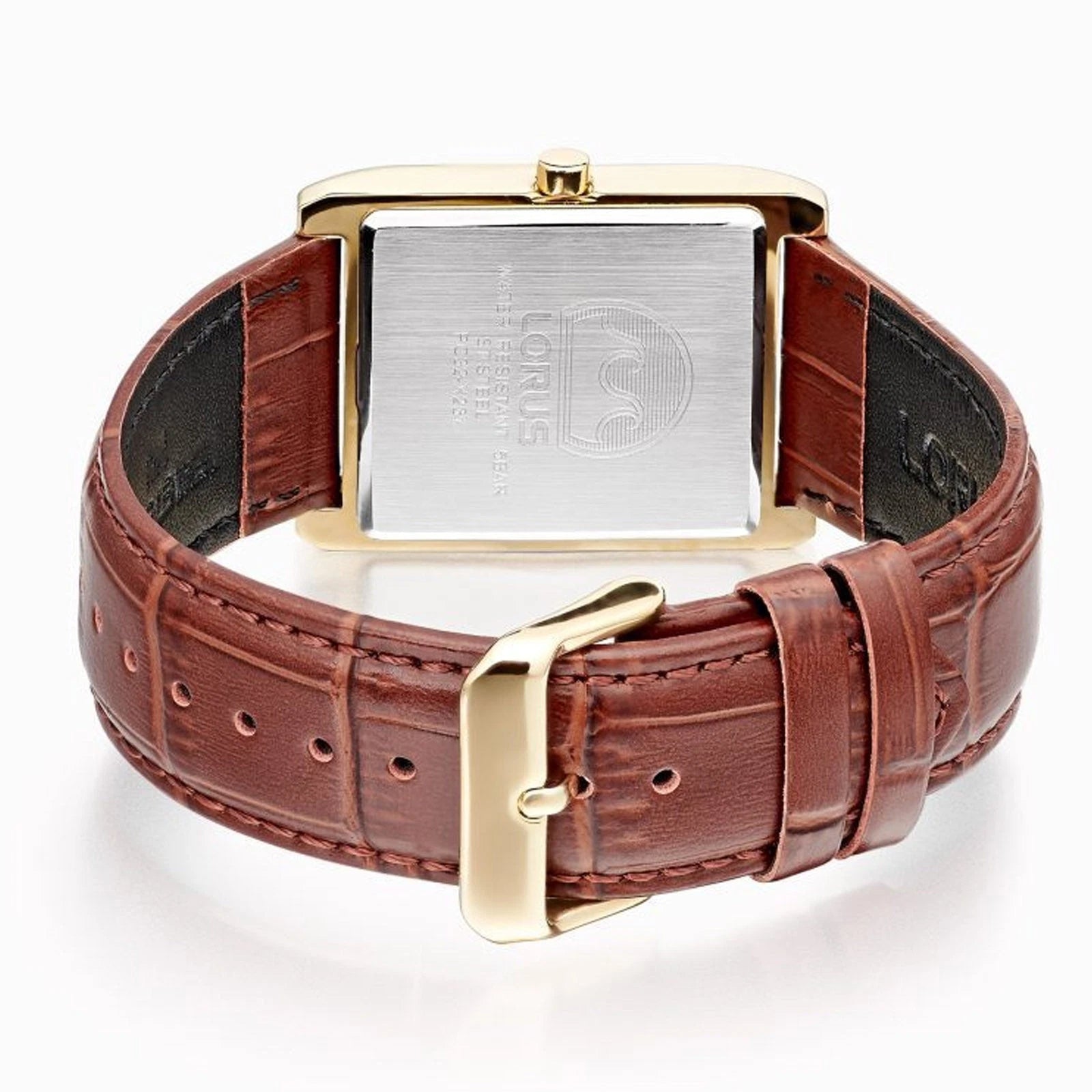 Lorus Gents White Dial Rectangle Watch RH940RX9 – Brown Leather Strap, Quartz Movement