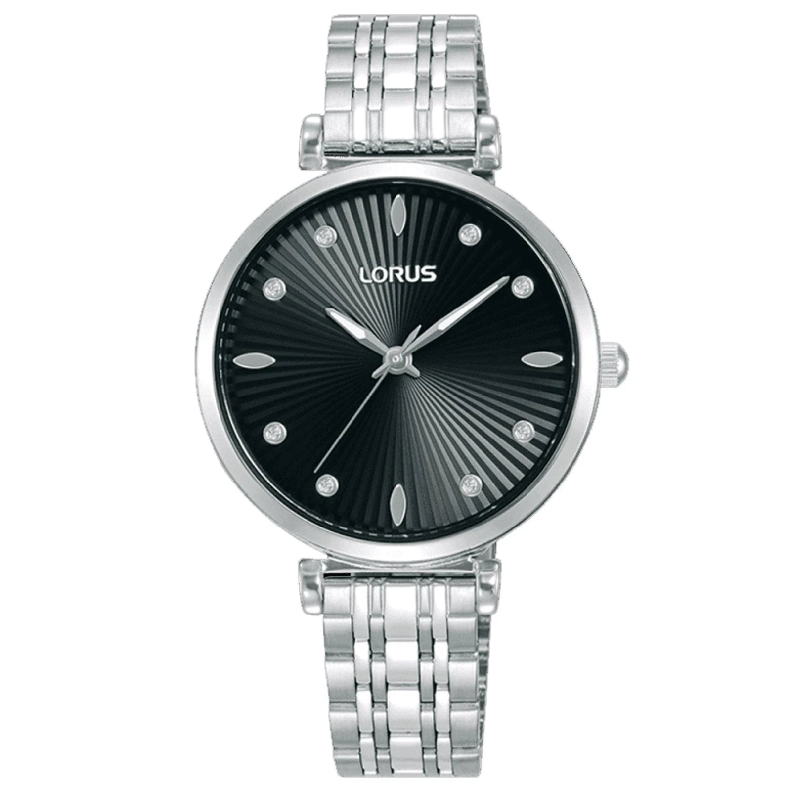 Elevate your everyday style with the Lorus Women’s Stainless Steel Quartz Watch. Featuring a sleek black dial with hour, minute, and second hands, this watch offers a modern and sophisticated look that suits any occasion.