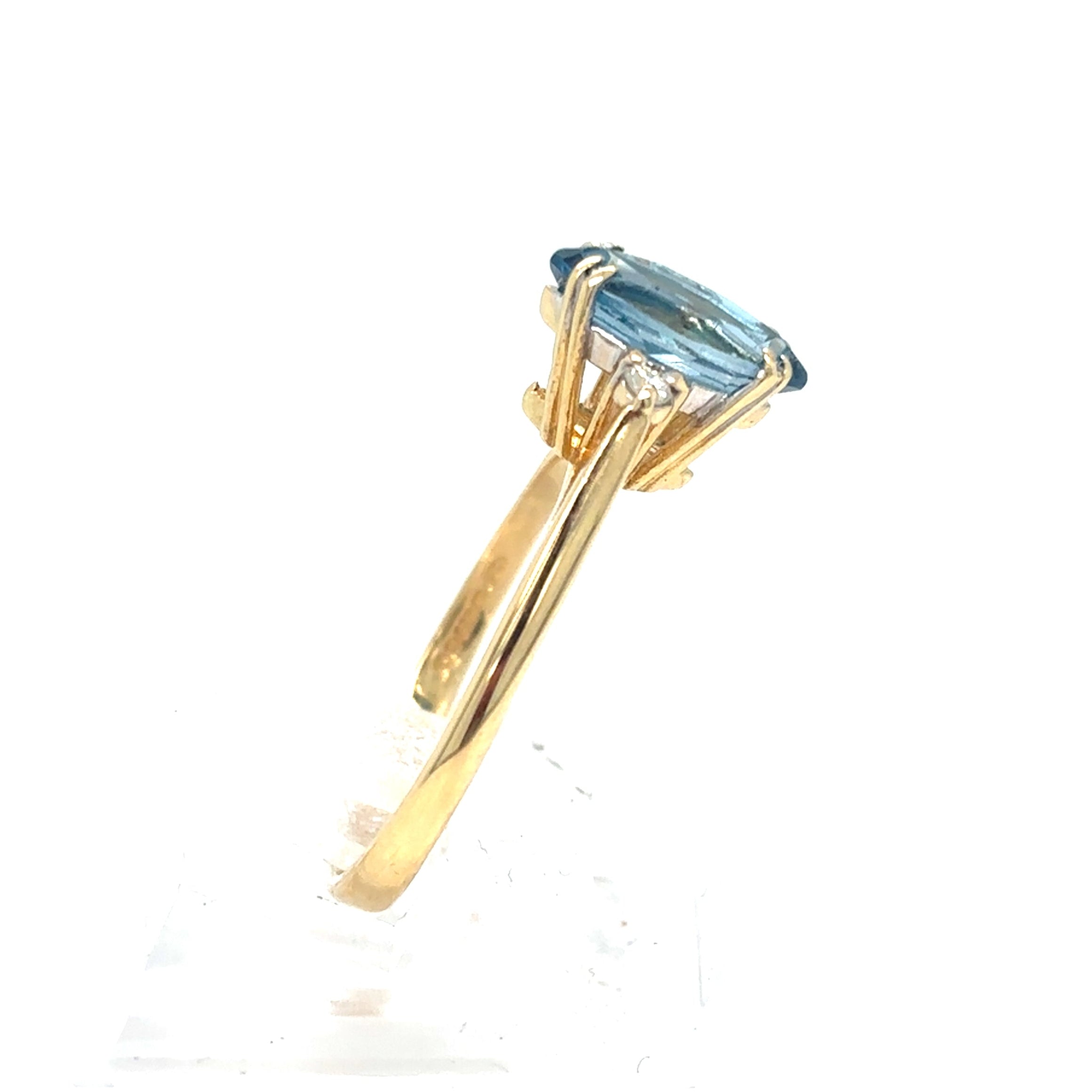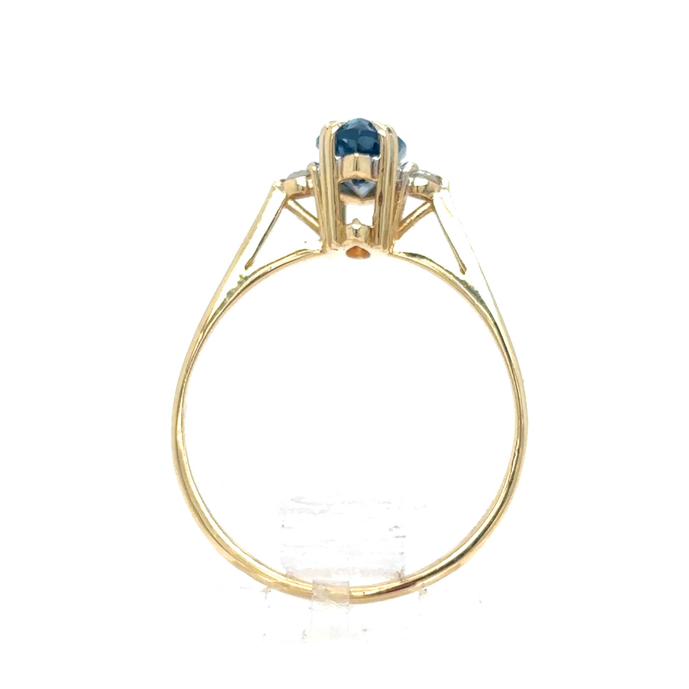18ct Gold Marquise Blue Topaz & Diamond 3 Stone Ring. Size P. Fine Jewellery Elegant Ladies Ring