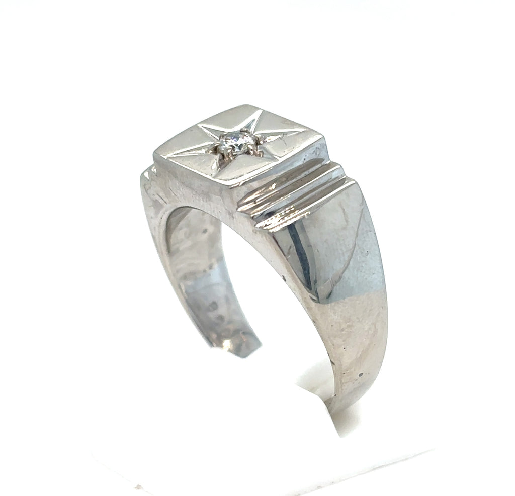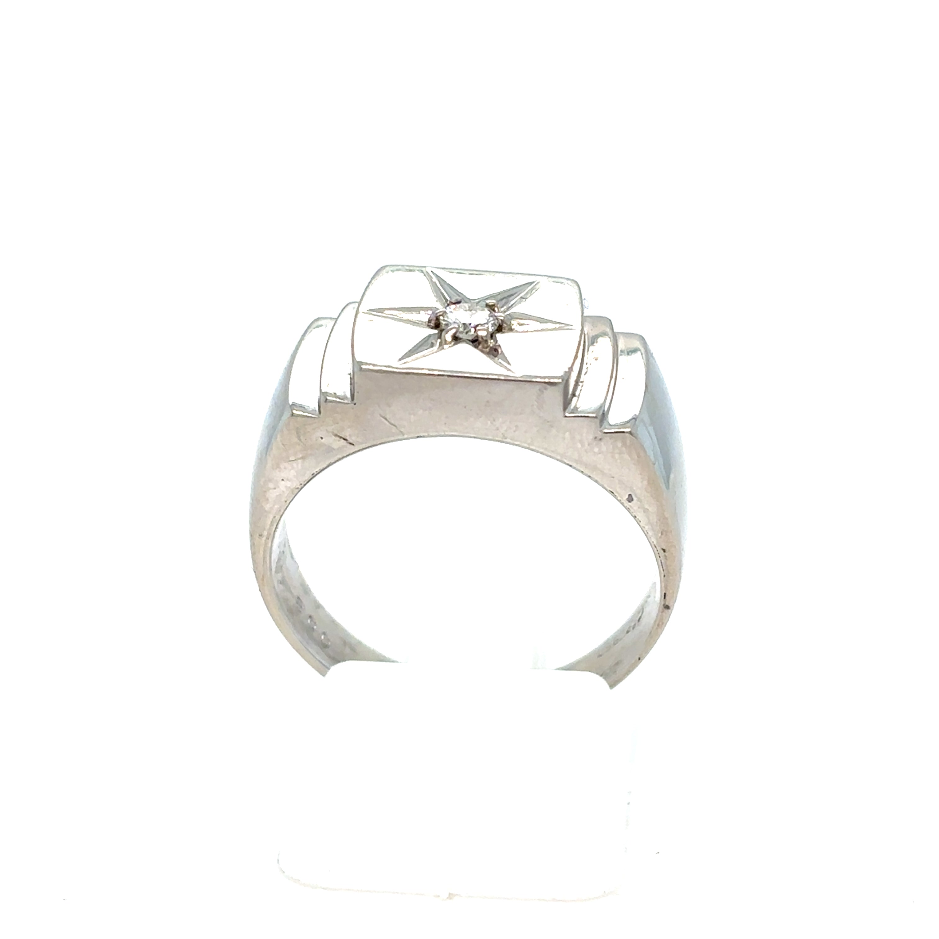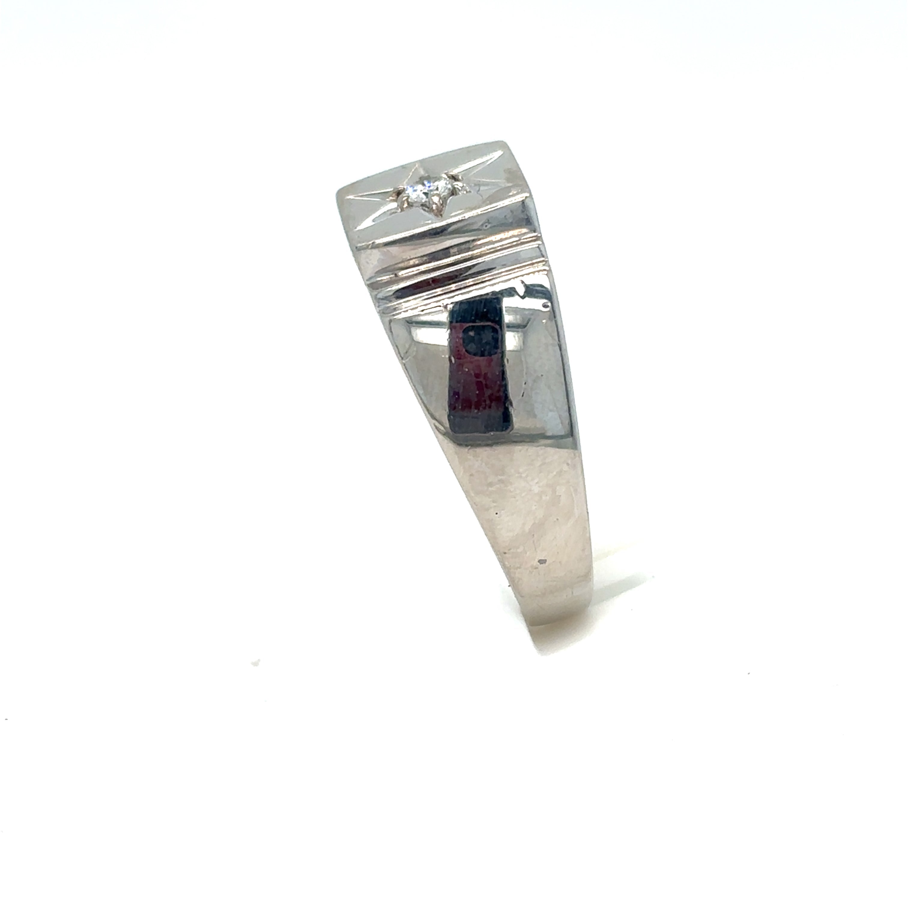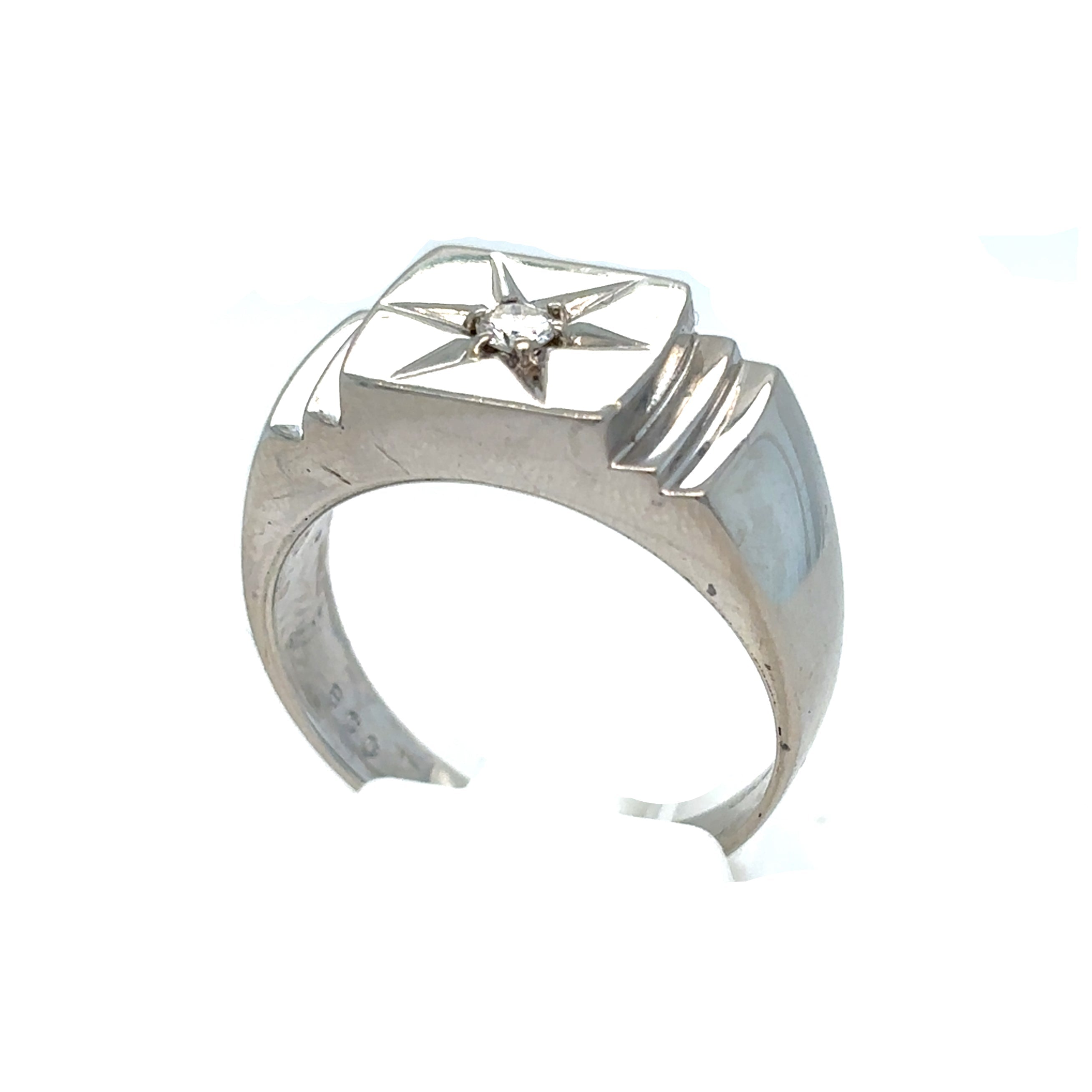 Men’s Platinum Diamond Signet Ring Size R. Brilliant Cut Diamond Star Setting. Pre Loved
