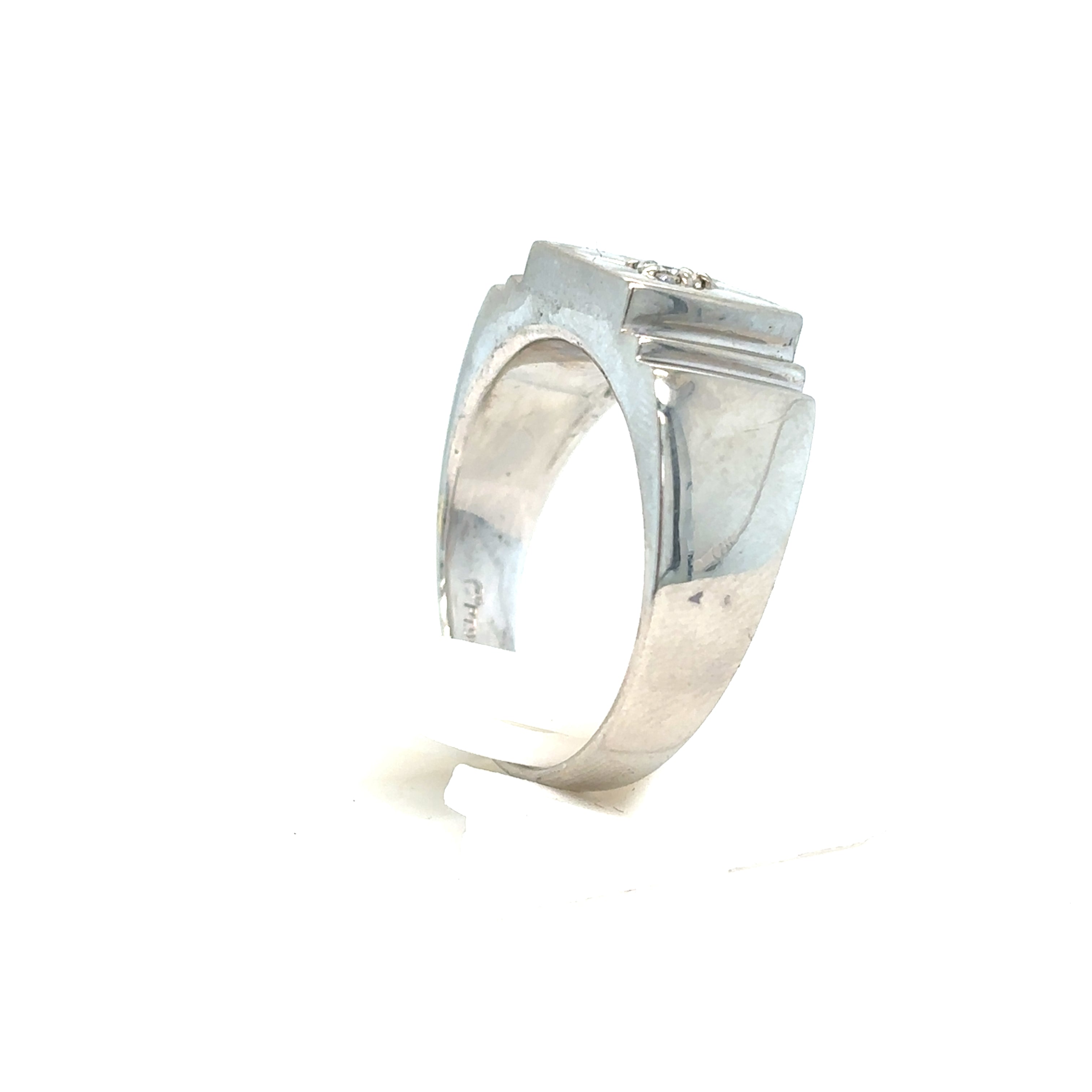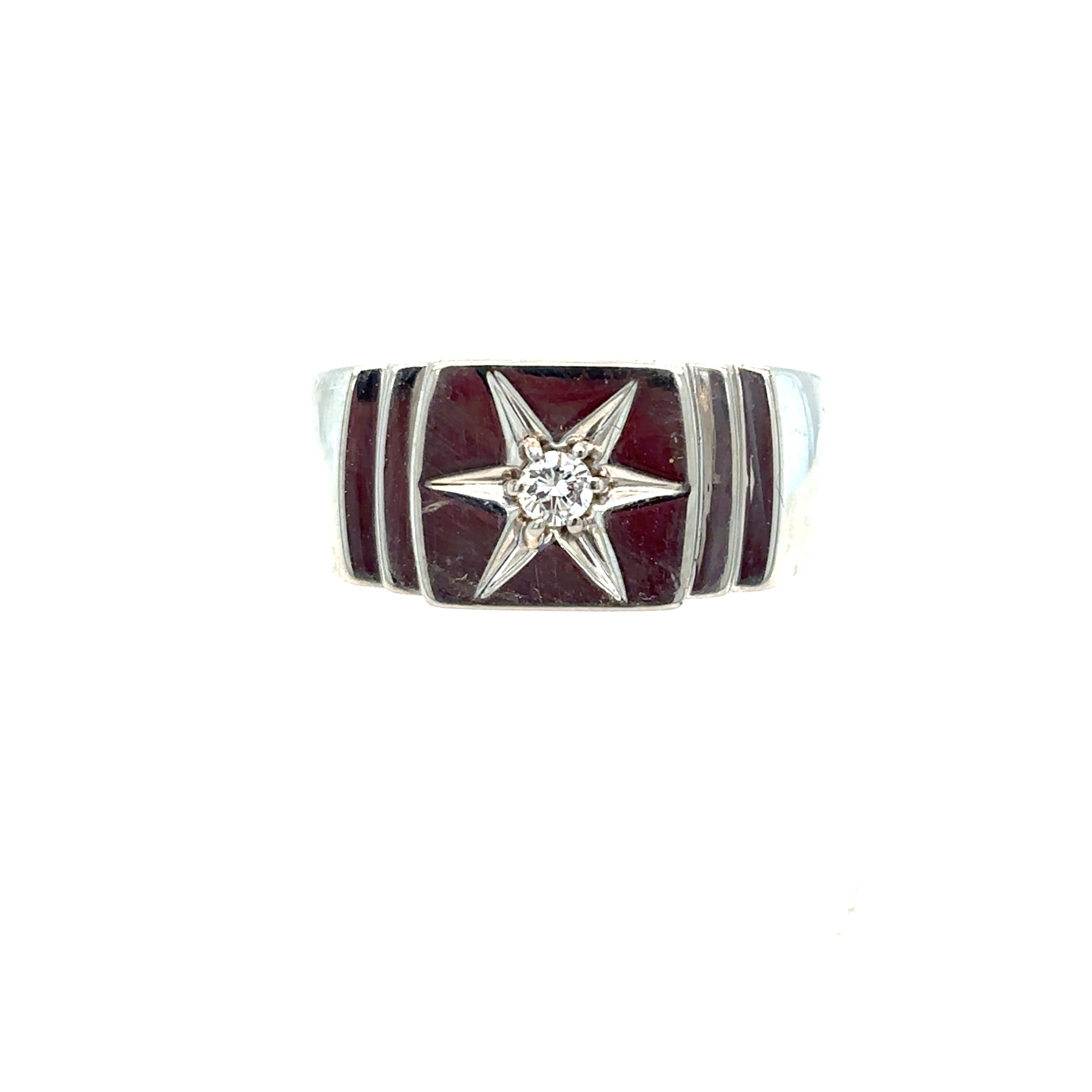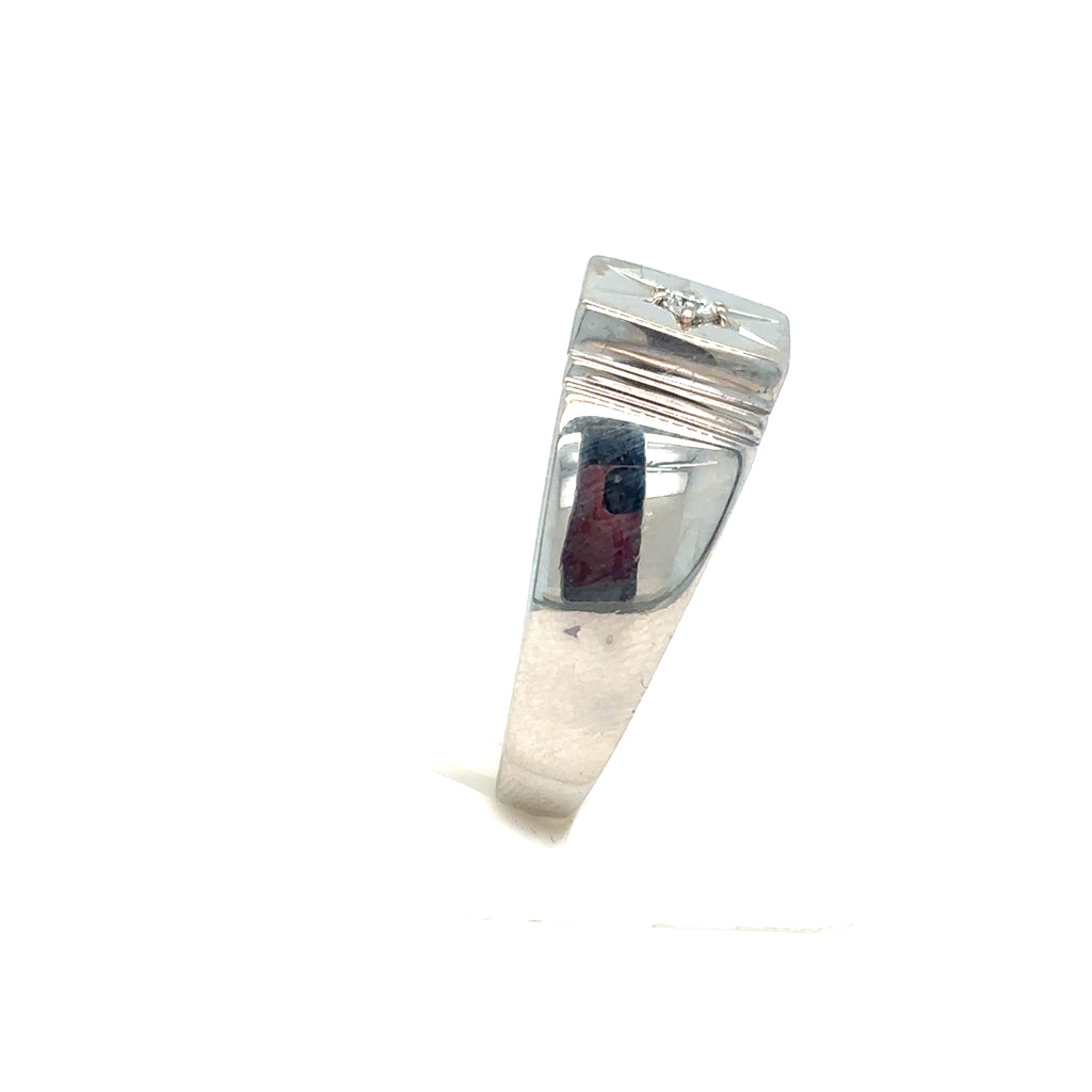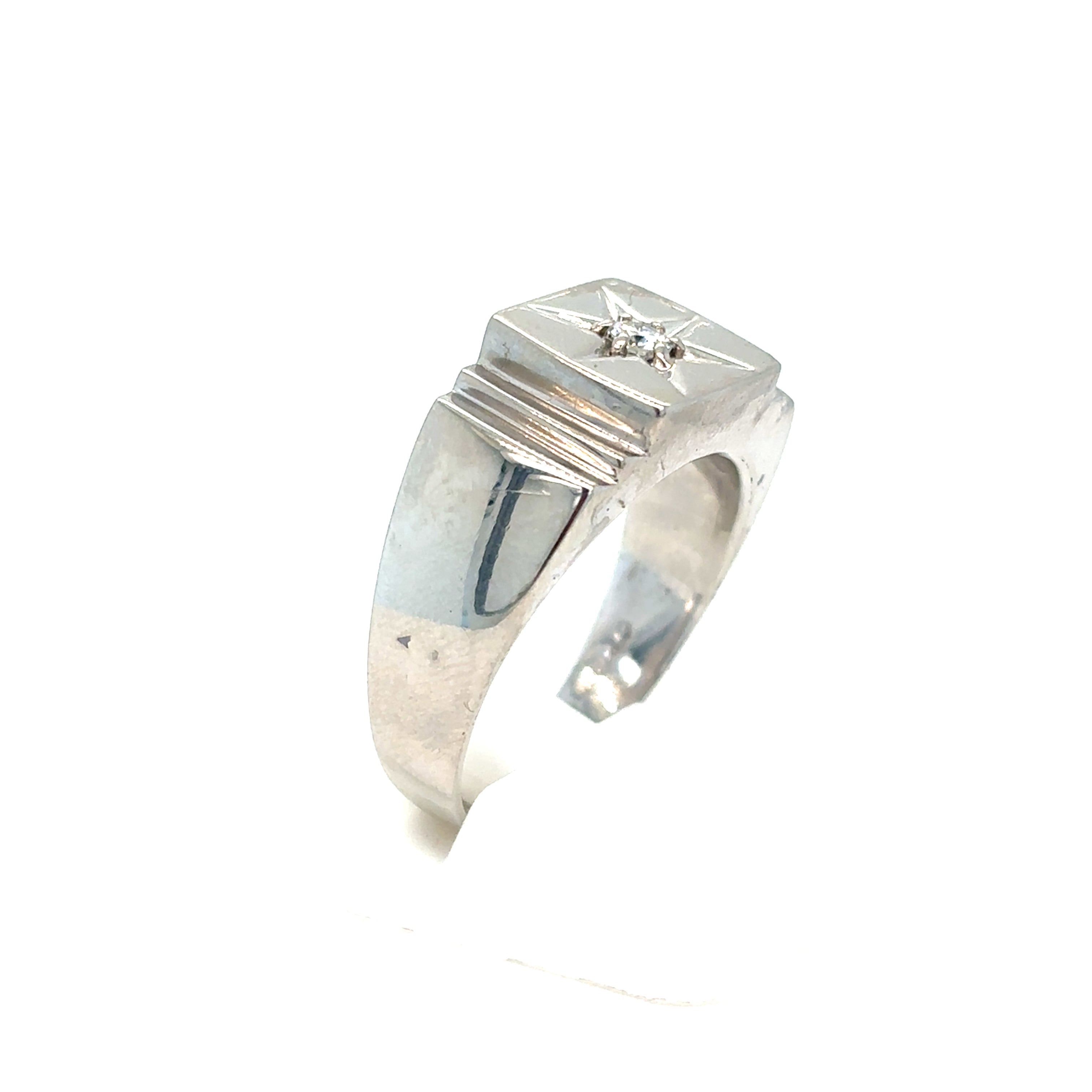 Men’s Platinum Diamond Signet Ring Size R. Brilliant Cut Diamond Star Setting. Pre Loved