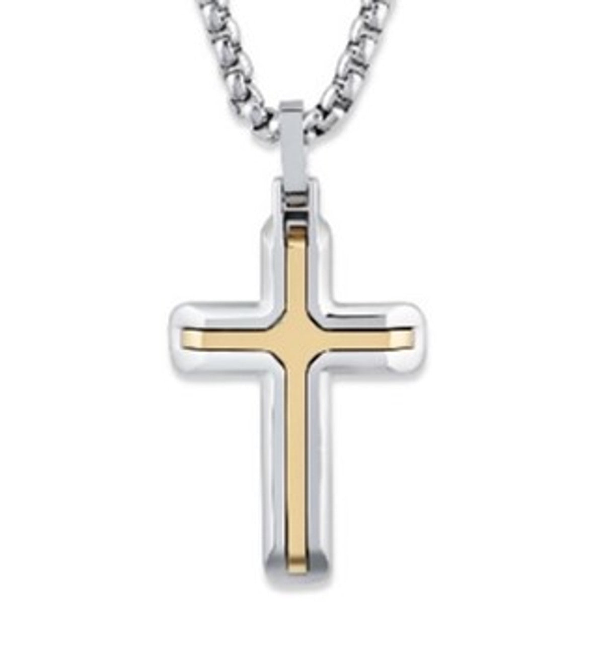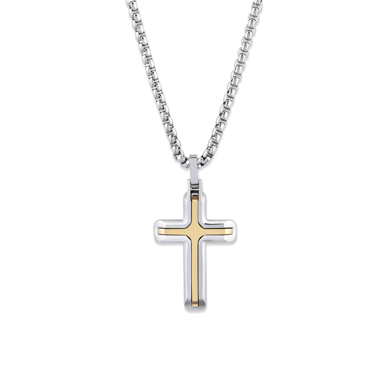 Unique & Co AN-132 Men's Stainless Steel Gold IP Cross Pendant Necklace